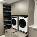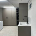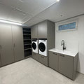 Dieser Kellerschrank verfügt über integrierte Haushaltsgeräte, ein Waschbecken, jede Menge Stauraum und Details, welche den Alltag erleichtern.