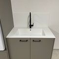 Die Badmöbelabdeckung ist mit zwei Becken und einer Rückwand ausgestattet - alles nahtlos zusammengesetzt! Dies bedeutet alles ist aus einem "Guss" und es entstehen keine Fugen im Nassbereich und ist dank Hi-Macs möglich.